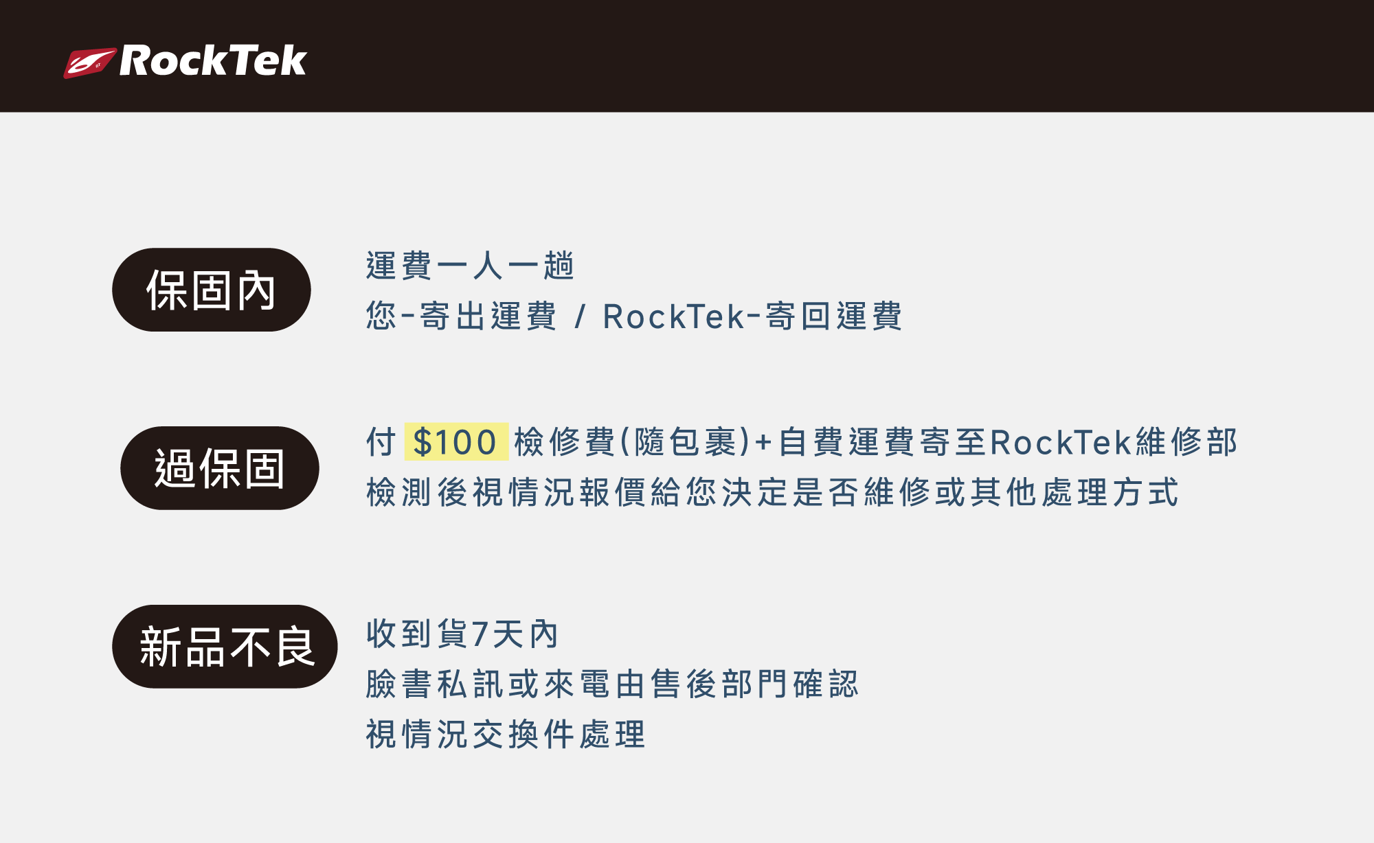 • 非 RockTek 商品本身瑕疵因素,我們 僅提供一次換貨機會